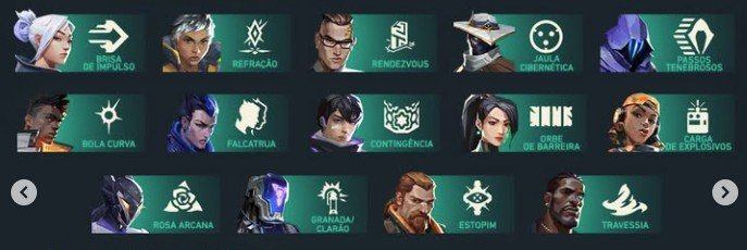 Conforme divulgado pelo perfil oficial do Valorant nas redes sociais, será possível escolher entre 14 agentes para jogar o novo modo. Confira os personagens e habilidades selecionáveis: