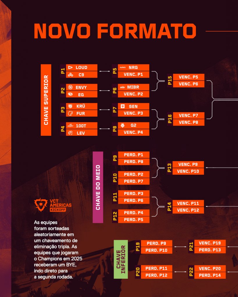 A primeira etapa do Valorant Champions Tour 2026 (VCT AMÉRICAS) começa na próxima quinta-feira (15), e contará com estreia de equipe brasileira logo no primeiro dia. Com ausência da fase de grupos, a edição deste ano conta com um formato exclusivo de tripla eliminação.