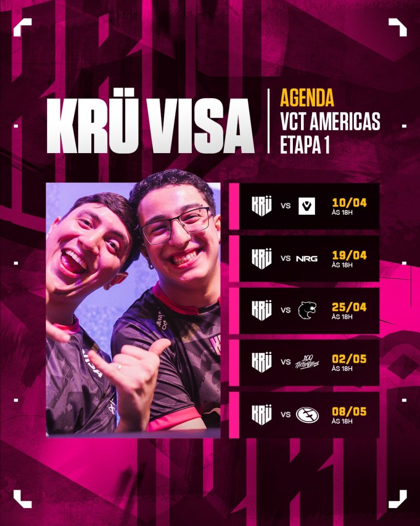 A KRU segue invicta na primeira etapa do Valorant Champions Tuor das Américas (VCT AMERICAS) e está classificada para a fase eliminatória, chamada de Playoffs, após vencer a equipe da FURIA no último sábado (25).