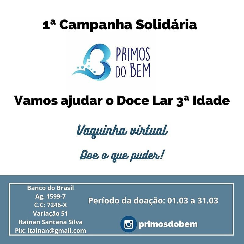 “Para quem tiver interesse em nos ajudar é só seguir o nosso perfil no Instagram (@primosdobem). Lá tem todas as informações sobre a campanha da vaquinha virtual. Podem aguardar que em breve teremos mais ações, e claro, contaremos com o apoio de todos”, convida Itainan Silva.