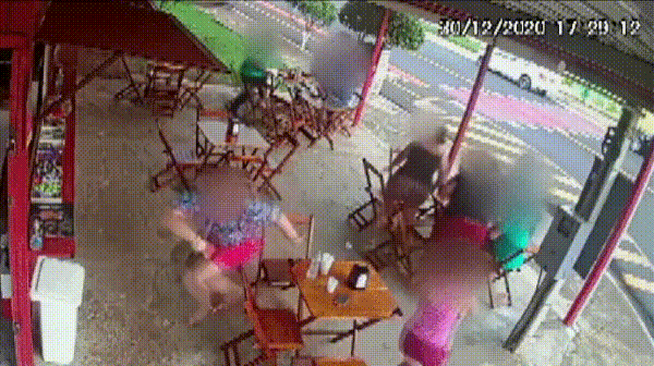 Um vídeo mostra o momento em que o motorista invade a lanchonete e atinge as pessoas que estavam no local.