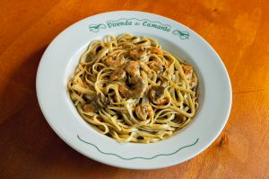Massa ao molho funghi acompanhada de deliciosos camarões. Inspirado na culinária dos imigrantes europeus, em particular alemães e italianos.