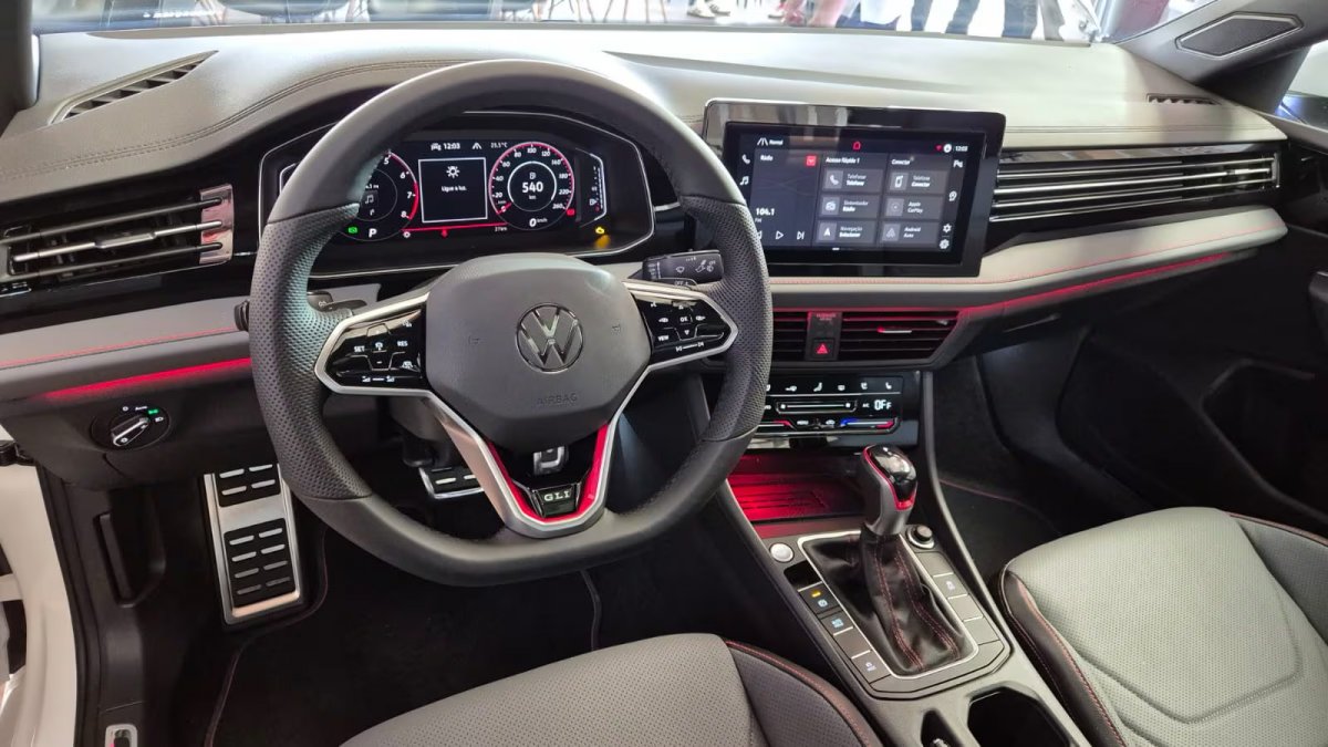 Por dentro, o sedã ganhou nova multimídia VW Play Connect com 10,2 polegadas, que ficou disposta no painel como no Tera, bancos elétricos com climatização, bem como acabamento em tons em vermelho independente da cor de carroceria. Falando nisso o Jetta estará disponível nas cores branco Puro, preto Mystic, cinza Platinum e vermelho Kings, cinza Glacial ou azul Pacifico.
